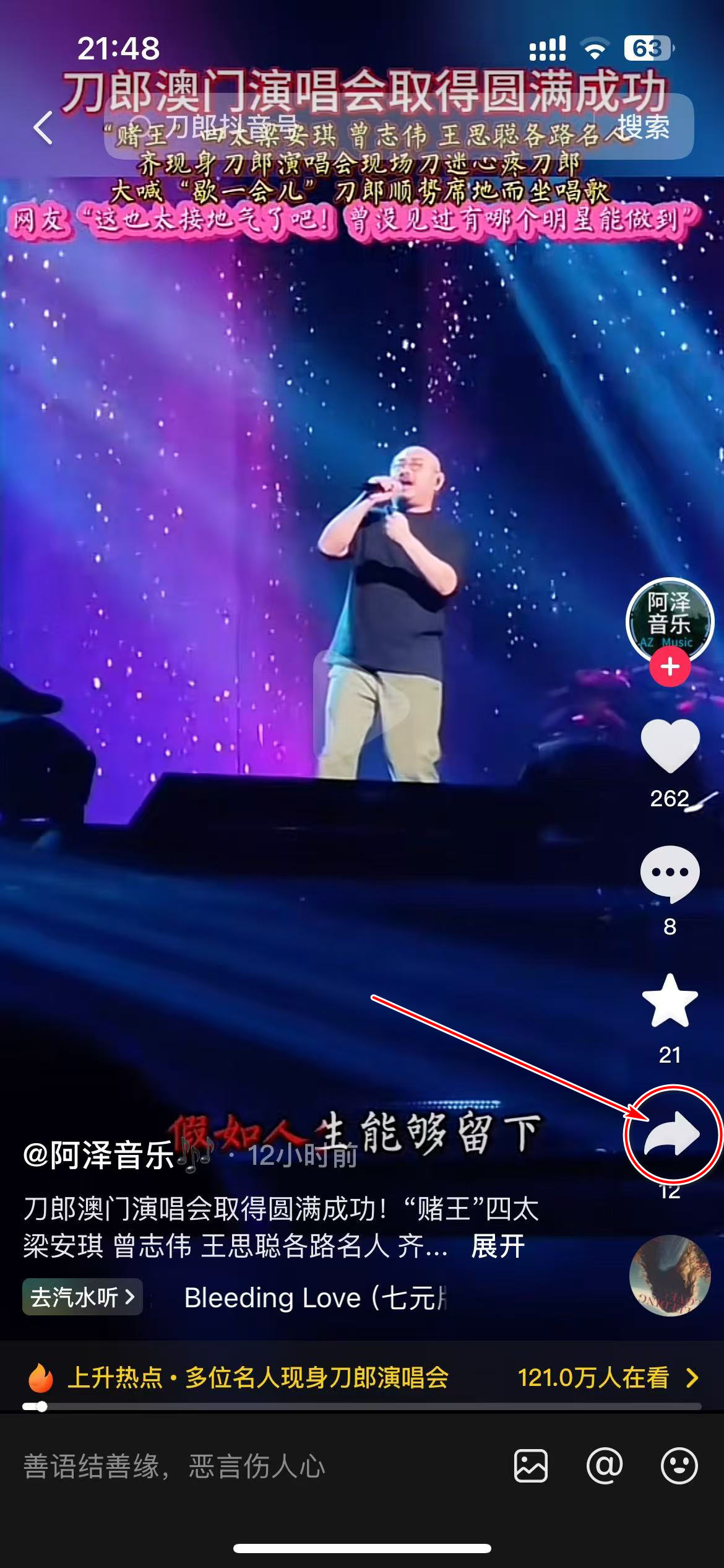 1、手机打开抖音APP,点击右下角“分享“”按钮